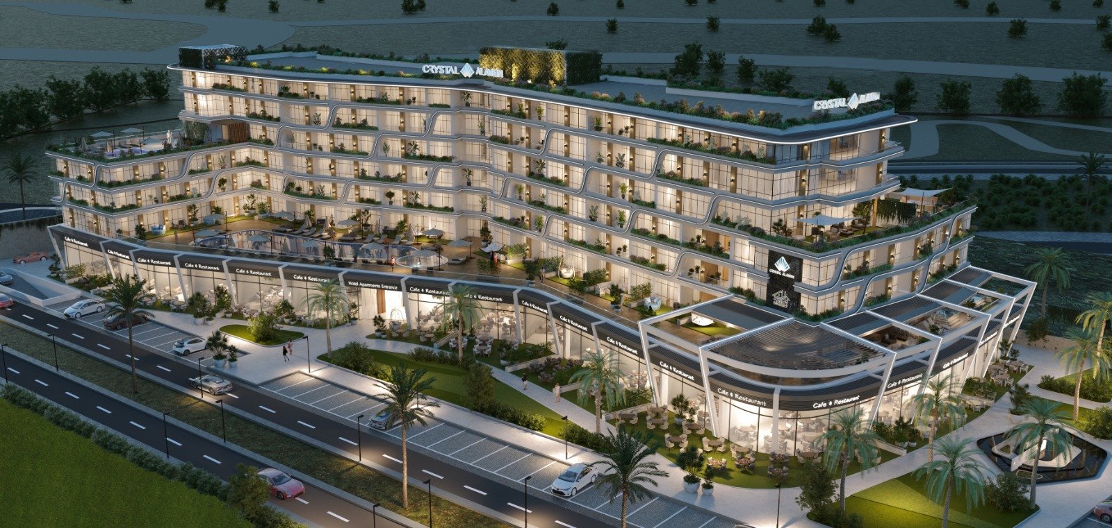 ويقدم Crystal Alamein خدمات فندقية خمس نجوم، حيث تجري المجموعة مفاوضات مع عدد من العلامات الفندقية العالمية لتولي الإدارة والتشغيل، إلى جانب التعاون مع شركة متخصصة في خدمات الضيافة.